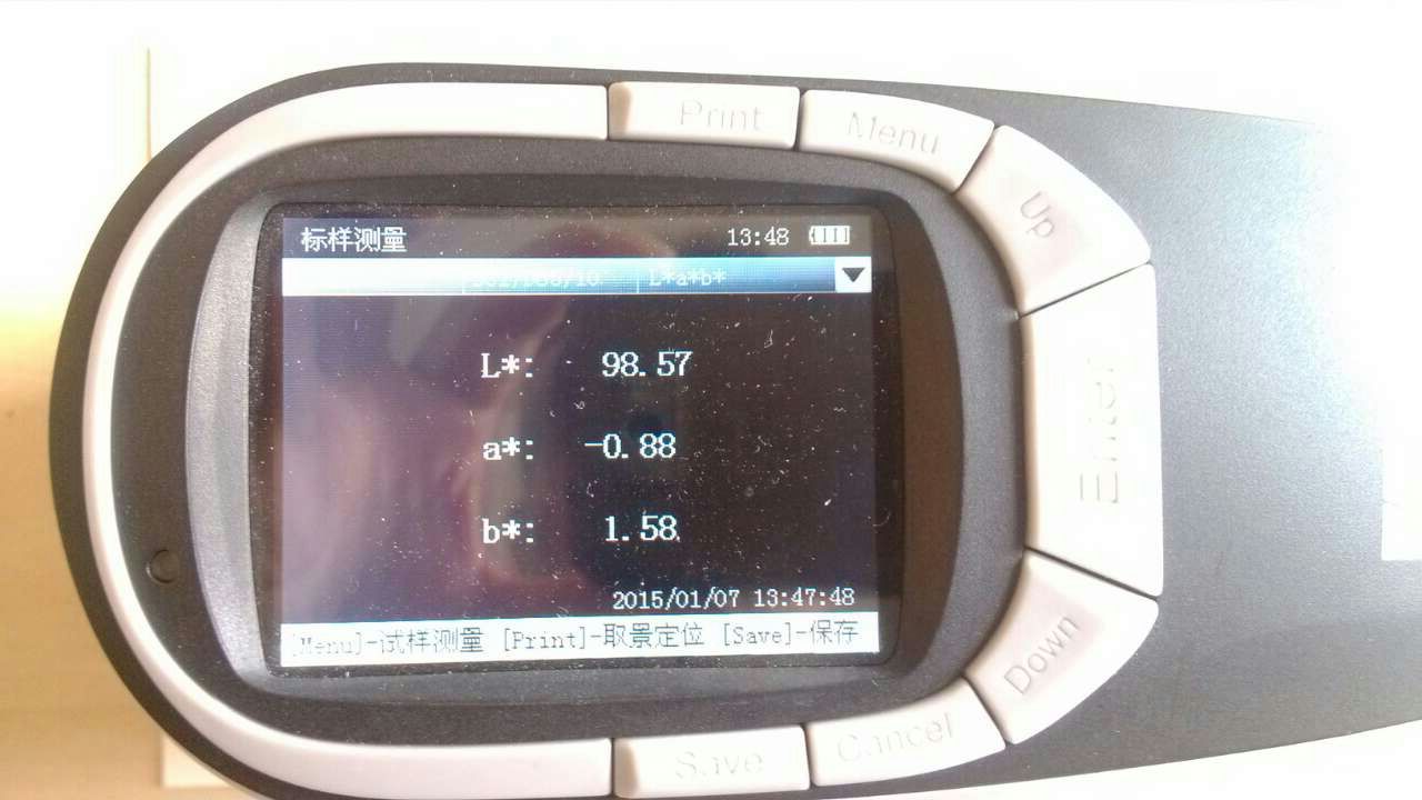 按測(cè)試鍵,對(duì)樣品進(jìn)行測(cè)量,得到顏色參數(shù)值,如下圖的所示