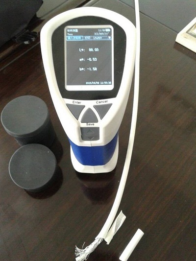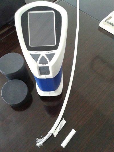 該公司決定采用杭州彩譜科技的精密色差儀CS-210(如圖2)來(lái)判別電纜的顏色和同一根電纜顏色上不同部分的色差,從而提高產(chǎn)品質(zhì)量,為客戶(hù)提供更高質(zhì)量的電纜。杭州彩譜科技的CS-210具有高精度測(cè)量,性能穩(wěn)定等特點(diǎn),能實(shí)現(xiàn)黃、白度測(cè)試,能多點(diǎn)測(cè)試取平均值,適合企業(yè)內(nèi)、外部色彩評(píng)價(jià)和數(shù)據(jù)管控。