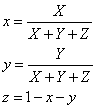 在獲得顏色的三刺激值后,可以按下式計(jì)算出該顏色在CIE1931色度系統(tǒng)中的色品坐標(biāo)。