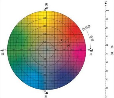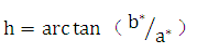 在L*,a*,b*直角坐標系中,可以導出L*,c*,h*的圓柱極坐標體系。公式如下: