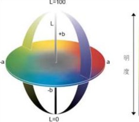 XYZ系統(tǒng)和在它的色度圖上表示的兩種顏色之間的距離與顏色觀察者感知的變化不一致,這個問題叫做感知均勻性(perceptual uniformity)問題。為了解決顏色空間的感知一致性問題,專家們對CIE-XYZ系統(tǒng)進行了非線性變換,制定了CIE-L*a*b*顏色空間。色空間坐標如圖1所示CIE-L*a*b*色空間以L值表示顏色的明度、a值表示顏色的綠紅值、b值表示顏色的藍黃值。L、a、b值可通過XYZ計算得到,計算公式如下所示: